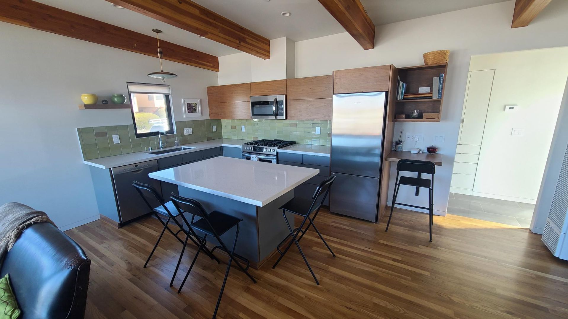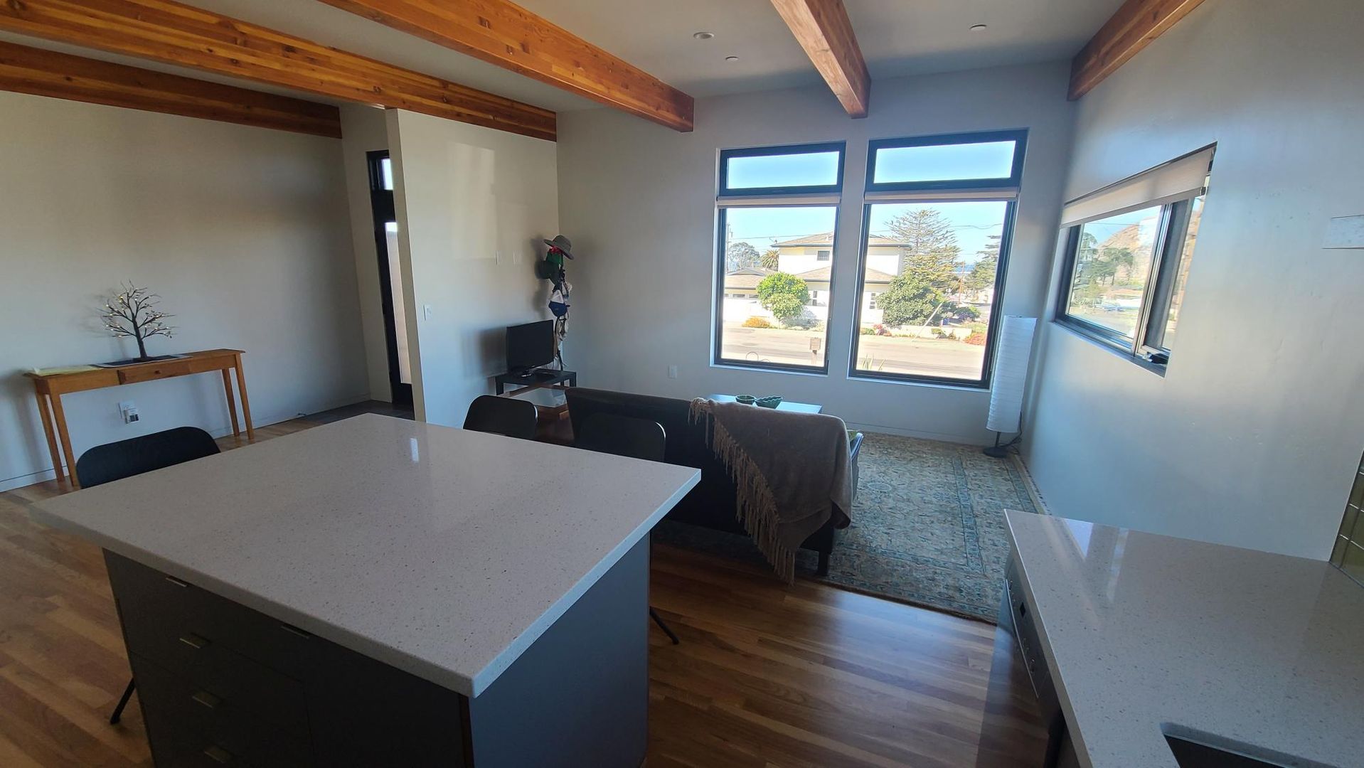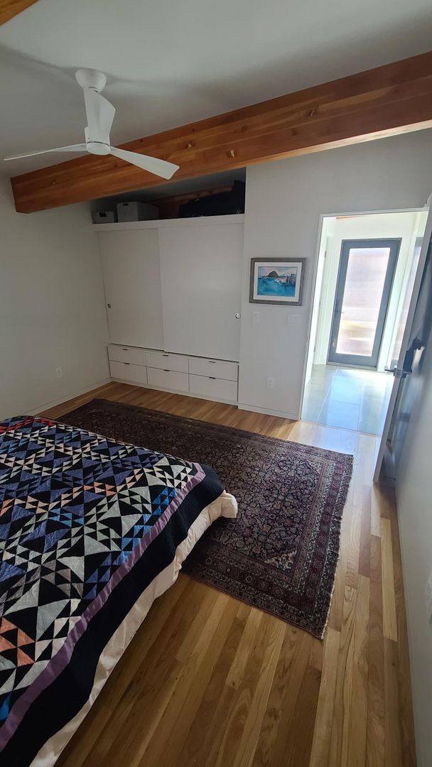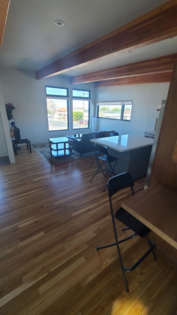 One bedroom, one bathroom freestanding unit in downtown Morro Bay! This high end one bedroom unit is light and bright, with reclaimed hardwood floors throughout living room, kitchen and bedroom. Tile bathroom and hall. Spacious kitchen with quartz countertops high end appliances and large island. Home has stacking washer/dryer. Walk in shower in bathroom and lots of built in storage. Front deck with views of Morro Rock. 1 car Garage included. Tenant pays all utilities. No Pets. No Smoking. 1 Year Lease.